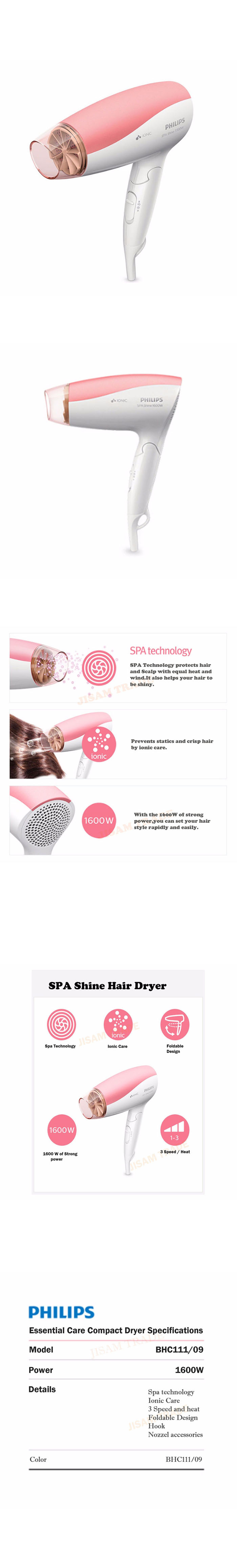 Philips BHC111/09 Spa Technology Shine Hair Dryer Ionic Care Foldable Pink 220V