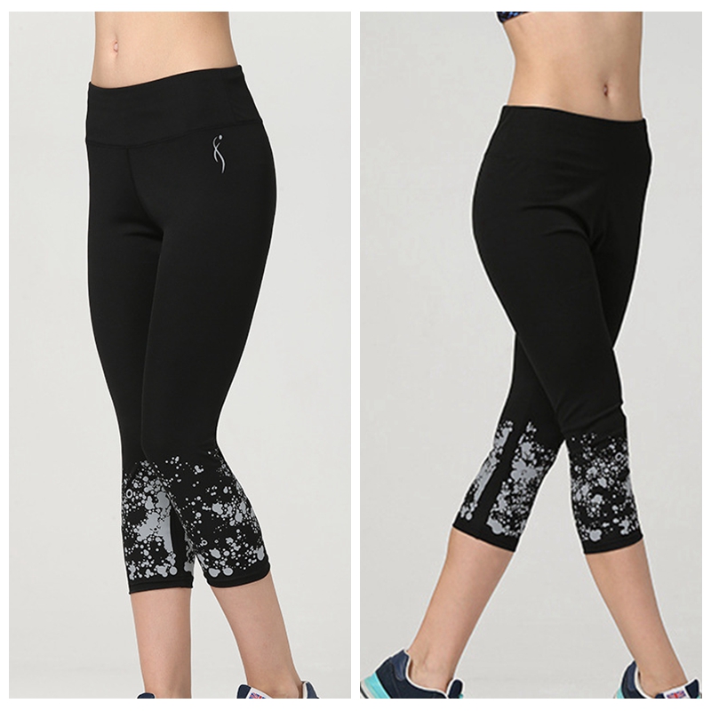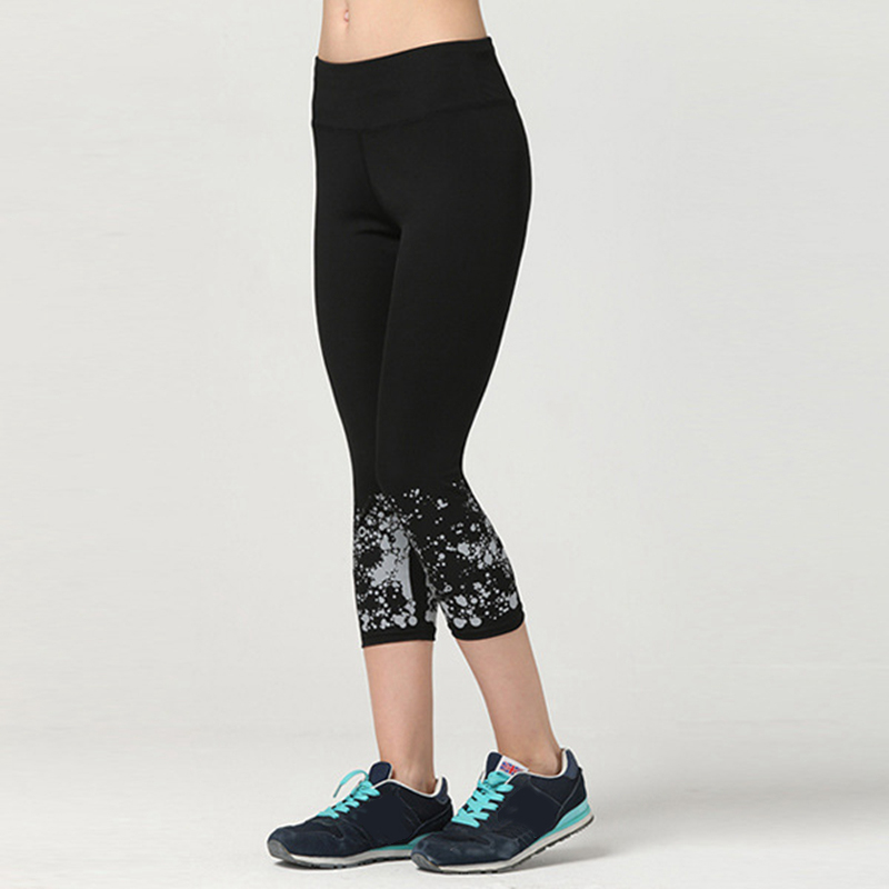 Large Size Fitness Women Yoga Cropped Pants Reflective Night Running Slim Leggings Sports Gym Training Tights Quick Dry Capris