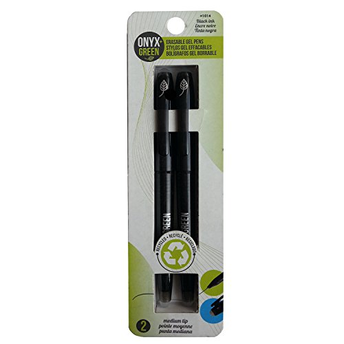 -. Title : Onyx and Green 2-Pack Erasable Gel Pen with Eraser, Recycled Plastic, 0.7 mm, Black (1014)