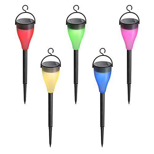 Solar Lights Outdoor Landscape Lamp for Pathway,Path,Garden,Lawn,Courtyard,Corridor,Patio,Porch with Smarthing 7 Colors/4 Mode/3 Placed Way(Wireless,Waterproof,5 Pack)