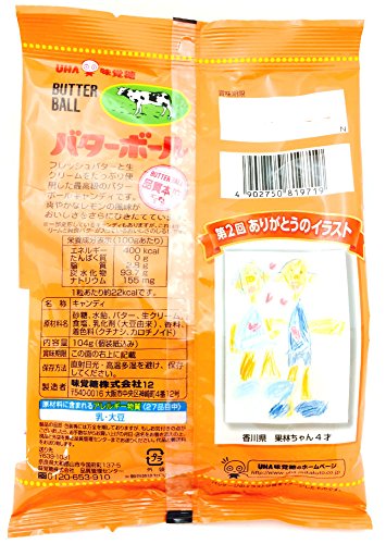 原材料:砂糖、水飴、バター、生クリーム、食塩、乳化剤、香料、着色料(カロチノイド)、(原材料の一部に大豆を含む)