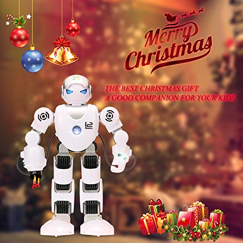 -. Feature : Much more fun remote control robot with various actions / Function: walk, shoot, fight, patrol, music, dance, machine language, arm-swing, programming / The transmitter only needs 2 AA Batteries (not included in box) / With cool LED flashing lights / A good companion for your kids