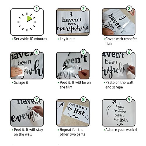COMPLEMENTS YOUR MAPS AND PHOTOS. At 32 by 32 inches, our Vinyl Decal Quote matches perfectly with our Scratch Off Maps and your photo frames. It adds a touch of inspiration to your wall of memories.