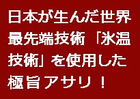 ![]() | 先ずはじめに、「氷温熟成」とは、冷蔵でもない冷凍でもない状態。 「第三の温度域」があることに目をつけた日本人技術者が研究を重ね たどり着いた、0℃以下なのに「凍らない世界」のことです。 この氷温域を利用して、食品の貯蔵や加工を行うことが氷温技術であり、 例えば、よく冬の寒さの中にさらされた白菜は、甘みが出て美味しい。と、 個々の食品に合った温度帯を研究し、そのものの良さを最大限に引き出す |