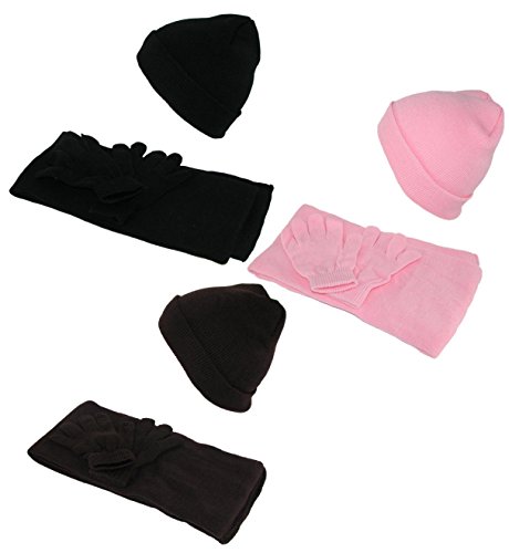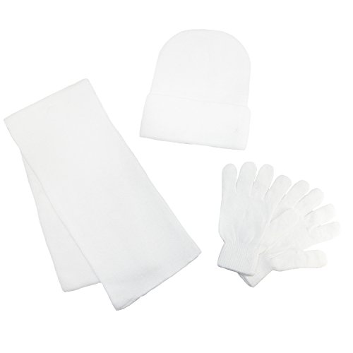 Studio : CTM Publisher : CTM Binding : Apparel Product Description Everything you need to keep your child warm. A timeless beanie cap has a fold down cuff that can be used to keep the ears warm. Soft gloves have an elastic cuff to keep the cold out. The scarf completes the set in matching colors and materials. 0