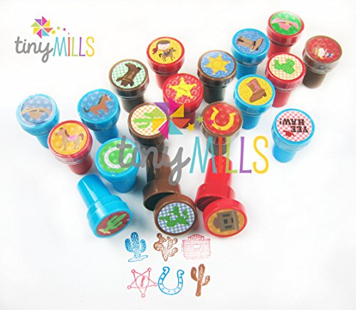 Our western themed cowboys and cowgirls stampers will put a hearty YEEHAW to any party favor bag! These stampers are also great for school projects, to create your own greeting cards, scrapbooking and decorating stationery. Have this stamp assortment in your party favors bags or the crafts table at your party, for home, in the classroom, or in art class! Our stamps are non-toxic, lead-free have passed all CPSIA and ASTM testing. Safe for children to use. 1.5 inches tall, 1 inch in diameterFeature