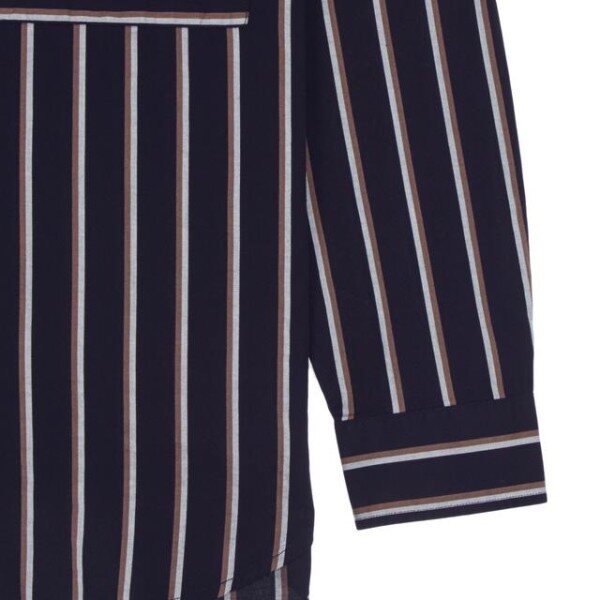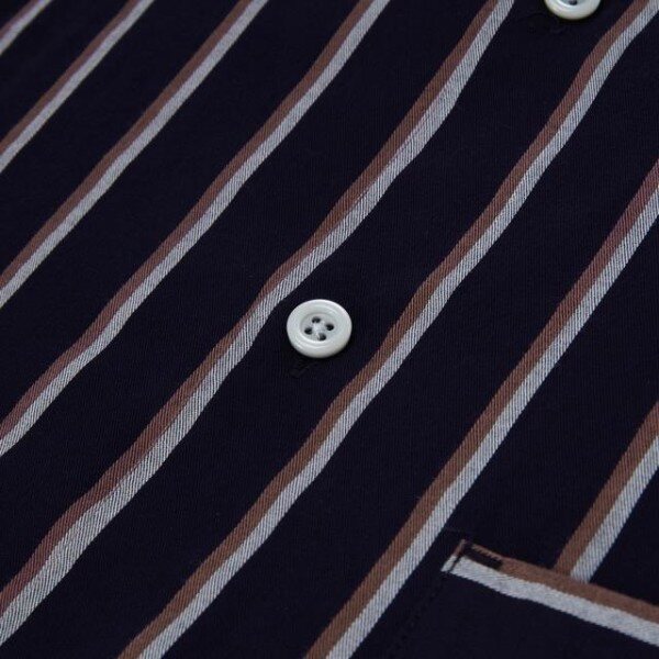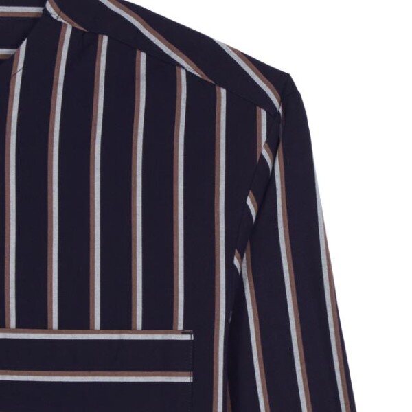 깔끔한 라운드 넥 디자인의 다양한 컬러를 더한 스트라이프 패턴이 돋보이며 가슴 부분의 포켓 장식이 어우러저 멋스러운 긴팔 셔츠입니다.부드러운 착용감의 면 소재를 사용하였으며 밑단 사이드 트임으로 활동성을 선사하여 슬랙스와 함께 매치하기 좋은 아이템입니다.