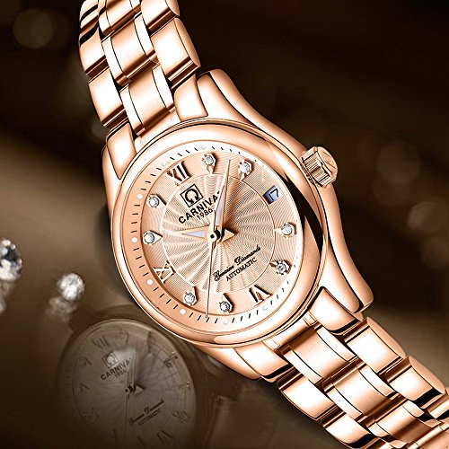 -. Title : CARNIVAL Women's Automatic Mechanical Watch Fashion Rose Gold Dress