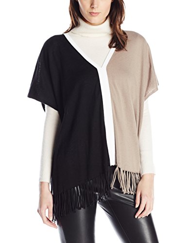 Fringe color block v neck poncho top
