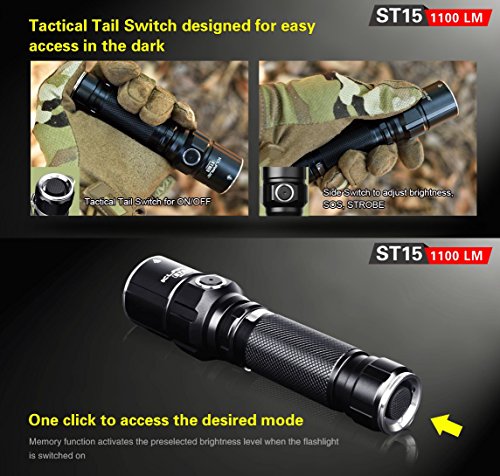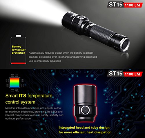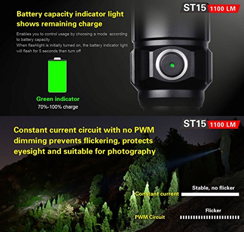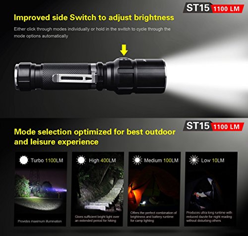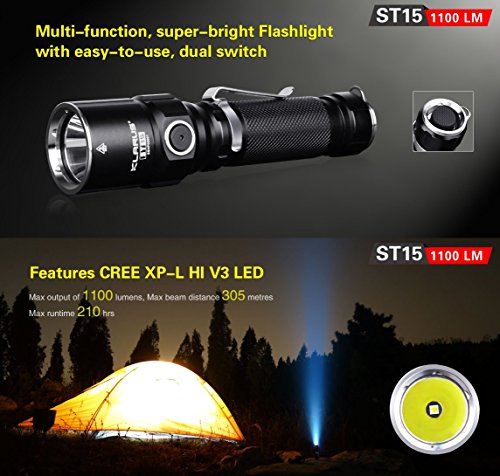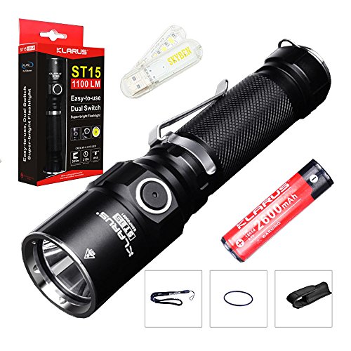Bundle: Klarus ST15 CREE XP-L HI V3 LED 1100 Lumens Watereproof Flashlight With 18650 Rechargeable Battery and Skyben USB Light