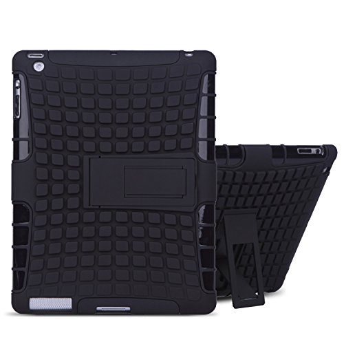 TKOOFN 2 in 1 Defender Tough Back Case with Kickstand for Apple iPad (iPad 2/3/4, Black) - PT7100