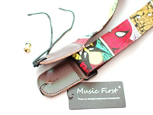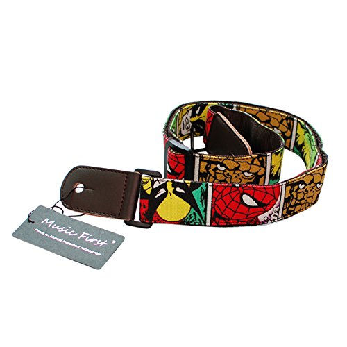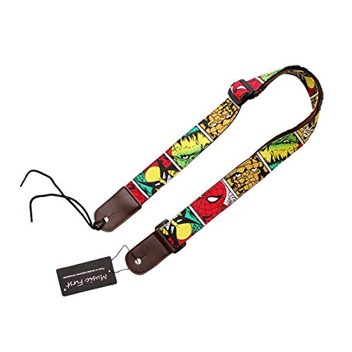MUSIC FIRST Cartoon Hero Soft Cotton & Genuine Leather Ukulele Strap Ukulele Shoulder Strap Version 2.0