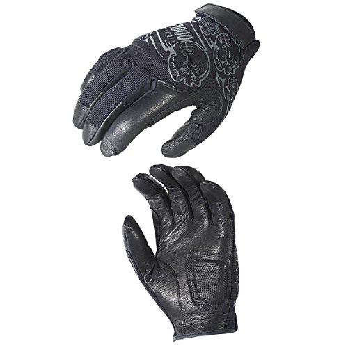 - Leather trigger finger and reinforced thumb. Hook-n-loop wrist closure tab