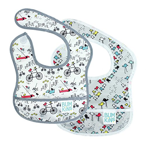 Bumkins Waterproof Starter Bib 2 Pack, Neutral (N15-Urban Bird/Bird Park) (4-9 Months)