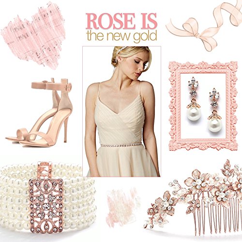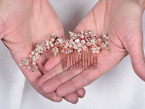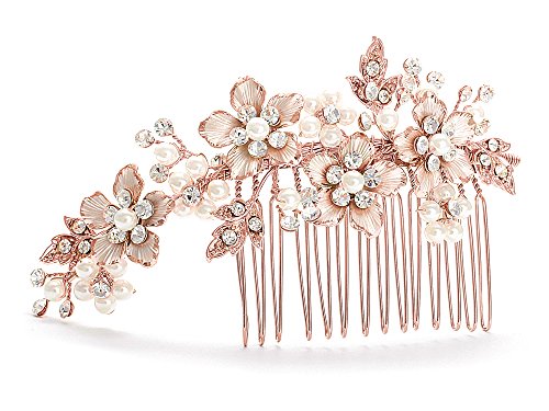 - Top Quality Austrian Crystals and Hand-Enameled Foliage; Hand-Wired Rose Gold Metal Comb with Comfort Design