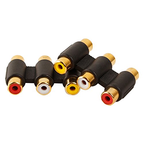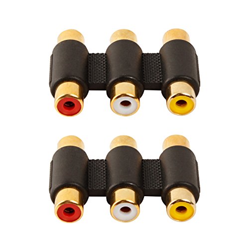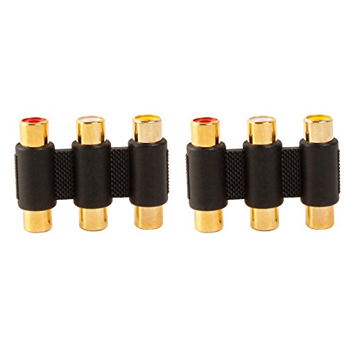 LIQUN 2-Pack Female to Female 3 RCA Connector Gold plated 3 RCA Jacks to 3 RCA Jacks Coupler White/Red/Yellow