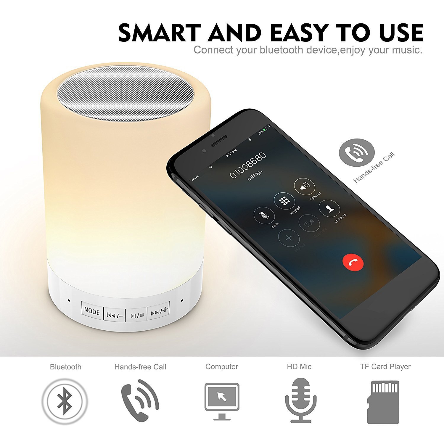 2 color mode: mode A - white light mode, when opening the light bulb of the touch lamp, it becomes white mode and it is possible to change the brightness by touching the mesh part at the top of the speaker Mode B - colorful mode,