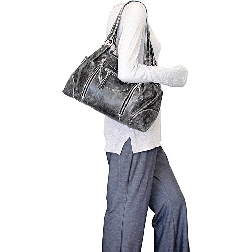 -. Feature : Trend setting two toned vintage leather / Top zipper entry / Two front zipper pockets / Back side zipper pocket / Back side cell phone pocket