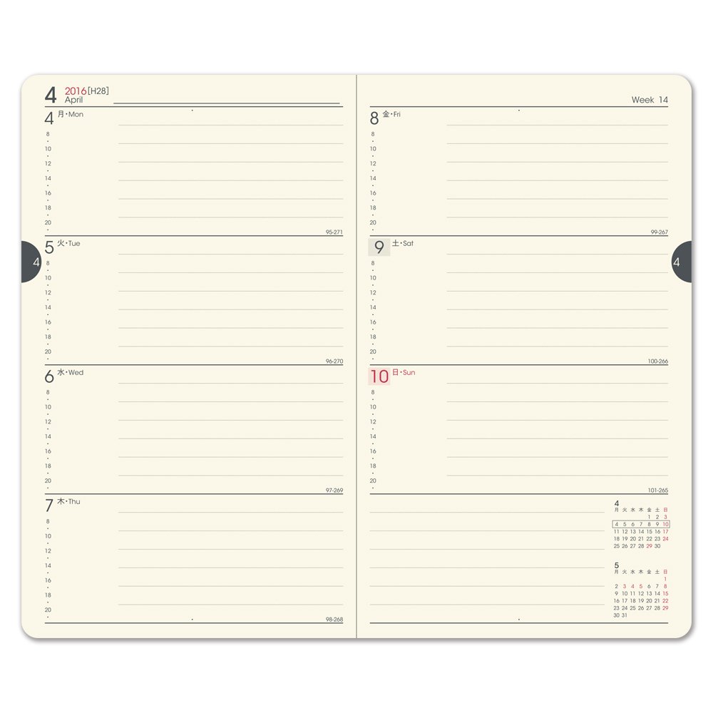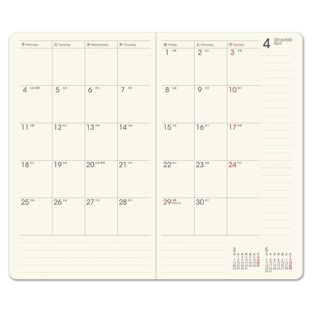 It is my eighth year since I used this type of notebook. It is convenient to be able to list both the long-term schedule and the short-term schedule because it is possible to describe the schedule of one week in the first half and the second half in the second half. Regarding the schedule of the week, it is convenient for those who are not Saturday and Sunday because they can be described with the same squares from Monday to Sunday. Since the cover is also solid, it will not become rash. However, the 2016 version increased by 180 yen compared to last year version. It is a notebook that I want to use even if I deduct it. I will continue to use this notebook from now on.