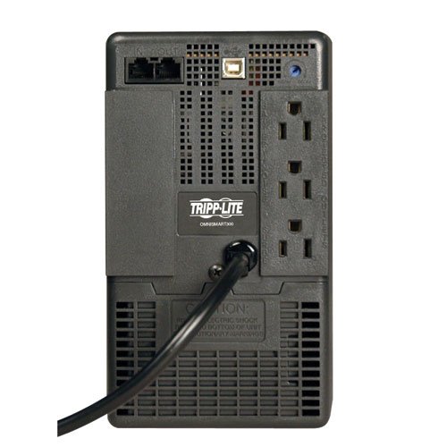 Tripp Lite's OMNISMART300PNP line-interactive UPS system offers voltage regulation, surge suppression and long-lasting battery support for personal computers, internetworking equipment and other sensitive electronics. Large internal battery supports entry level PC systems for up to 30 min. during power failures so that connected equipment can be shutdown without data loss. Automatic voltage regulation (AVR) circuits regulate brownouts as low as 75V and overvoltages as high as 147V to normal 120V levels without consuming battery power. Offers complete desktop power protection in an attractive black upright tower configuration. Includes 3 battery-supported outlets with full AC surge suppression. HID-compliant USB port enables optional unattended system shutdown without data loss in case of extended power failure; USB cable included. HID-compliant USB port also enables direct integration with built-in power management and auto-shutdown features of Windows and MAC OS X. PowerAlert Software available via download at no cost from Tripp Lite's website. Built-in dataline protection jacks offer protection on a single dialup tel/DSL line. Built-in audible alarm and 4 front panel LEDs indicate line power status, battery power status, battery low/replace status and voltage regulator operation. 300VA/180W power-handling ability supports entry-level PCs, network workstations, point-of-sale equipment, small business phone systems, audio/video equipment and home theater systems. Offers 10.5 min. battery runtime with a full load of 300VA/180W and 27 min. with a half load of 150VA/90W. Supports battery replacement via built-in access panel.Feature