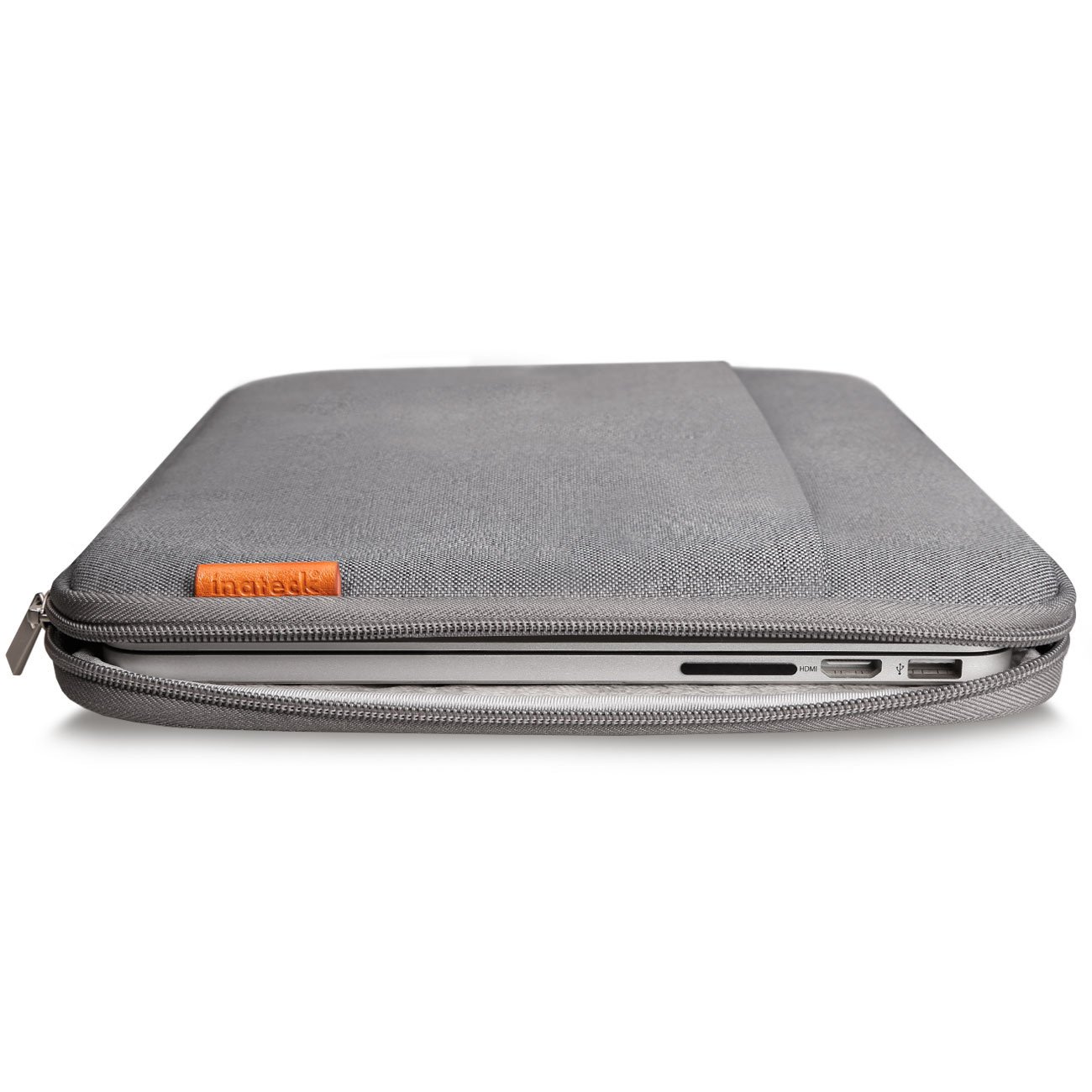 This laptop protective case absorbs scratches and impacts on your laptop computer by the outer lining of the woven fabric, super soft cotton layer, and SBR Neoprene prevents water from entering.