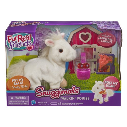-. Binding : Toy -. Brand : Fur Real Friends -. Department : baby-girls -. EAN : 0658107644612 -. Feature : Cuddly and super cute walking pony figure / She really walks when you press her back / Put her saddlebag on / Comes with a "carrots" treat / Pony figure comes with carrots and saddlebag accessories -. IsAdultProduct : 0 -. Label : Hasbro -. Manufacturer : Hasbro -. Model : A5047 -. MPN : A5047 -. PackageQuantity : 1 -. PartNumber : A5047 -. ProductGroup : Toy -. ProductTypeName : TOYS_AND_GAMES -. Publisher : Hasbro -. Studio : Hasbro -. Title : FurReal Friends Snimals Walkin' Ponies Crystal Storm Pet -. UPC : 653569872450 -. Warranty : No Warranty