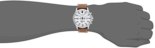 -. Feature : Multifunction features include day, date, and GMT (24 hour) sub dials / Silver case and brown, genuine leather, strap with ivory stitching / Swiss-quartz movement / Case diameter: 44mm / Water resistant to 99 feet