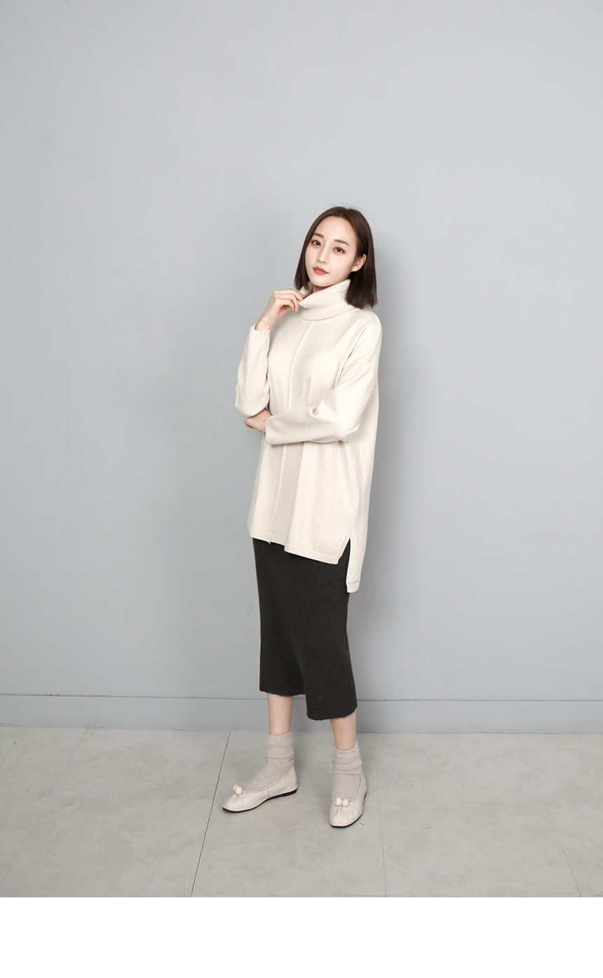 탄탄한 소재감의 골지 뒷트임 울 스커트