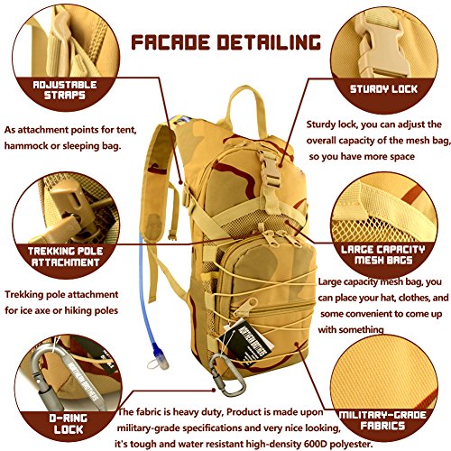 Product Description Hydration Backpack Tactical Rucksack Run-pack with 3 Liter/101 oz Reservoirs Water Bladder Bag for Hiking, Running, Camping, Climbing, Cycling, Walking, Hunting 0