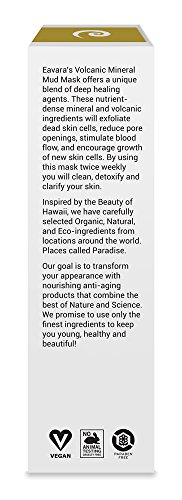 Eavara's Volcanic Mineral Mud Mask offers a unique blend of deep healing agents. These nutrient-dense organic, mineral and volcanic ingredients will exfoliate dead skin, reduce pore openings, stimulate blood flow, and encourage growth of new skin cells.