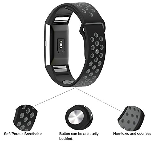 FLEXIBLE ADJUSTMENT: This replacement band for Fitbit charge 2 has multi-holes design with more wear range choices, always a hole for you not matter your wrist is large or small. Fits for 5.5"-8.1" (140mm-205mm) , (Fitbit device not included)
