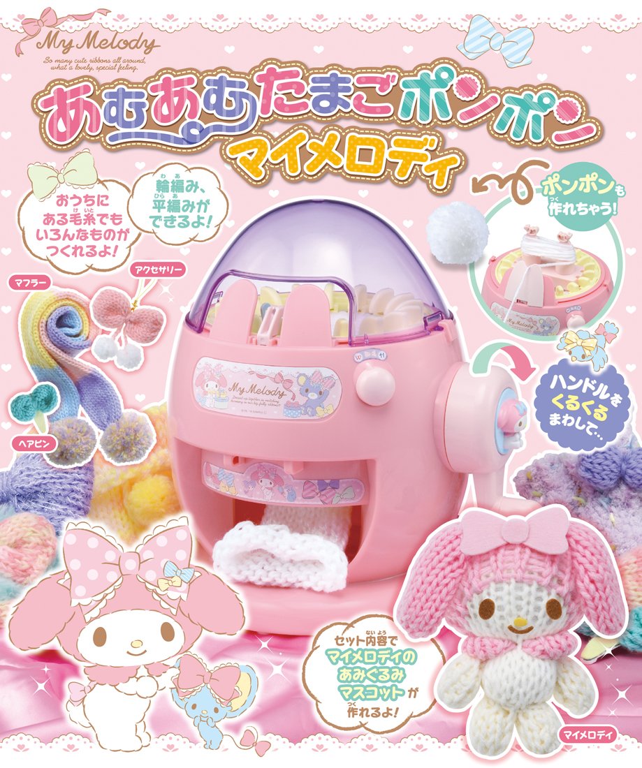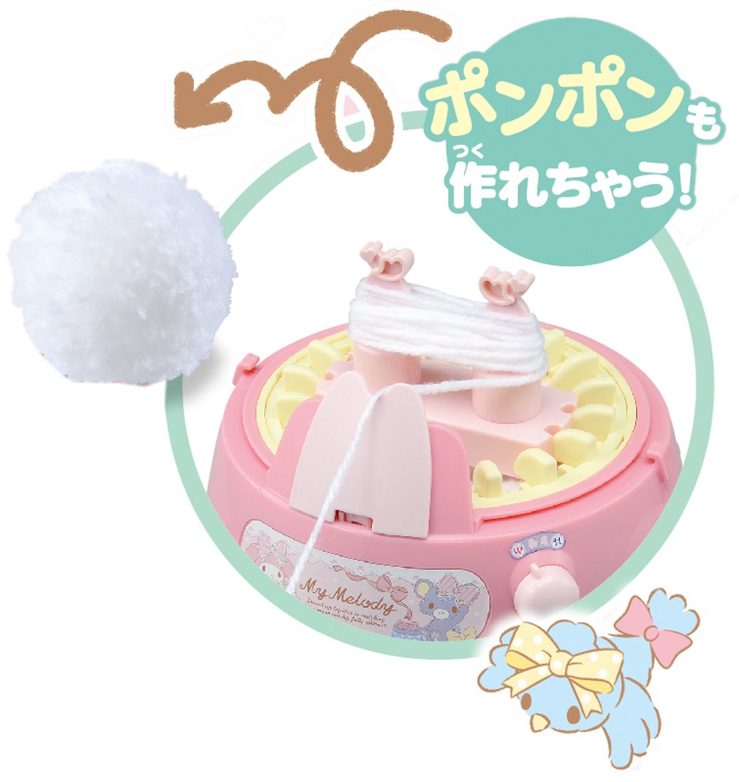 We can make rubber knitting, flat knitting and pom-pon! Knitting machine that can easily loop knitting and plain knitting simply by turning the handle.