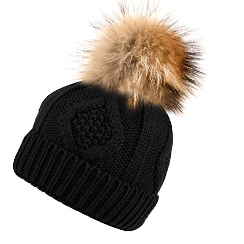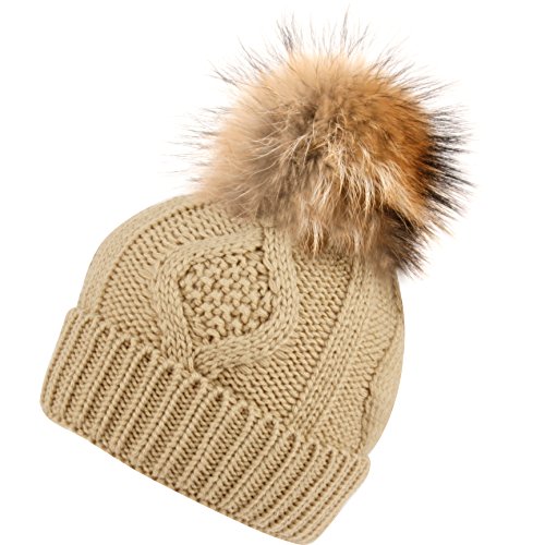 Binding : Apparel Product Description Stay warm and fashionable in the fall and winter months with this ultra-soft, acrylic blend beanie featuring a plush genuine raccoon fur pompom. Super soft and stretchy, the material fits a variety of head sizes and hair lengths. This beanie is appropriate for women of all ages. Look cool with this hat as you take your style from drab to fab by wearing it with your favorite leather jacket and skinny jeans. Perfect for a holiday gift or stocking stuffer for your friends and family. A prime example of fashion meeting with functionality. 0
