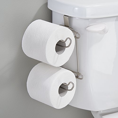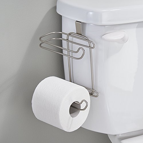 mDesign Toilet Paper Roll Holder for Bathroom Storage, Over the Tank - Satin