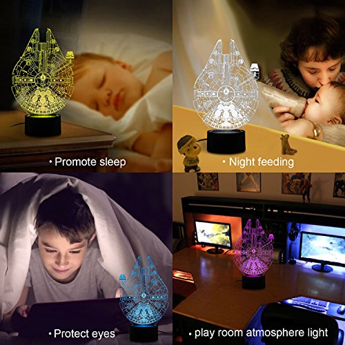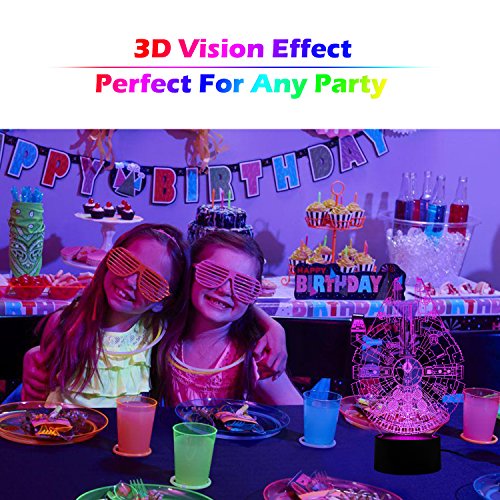 Fixture Features:switch botton design, 3D illusion lamp, 7 colors changing, decoration for bedroom children room, awesome gift for Christmas
