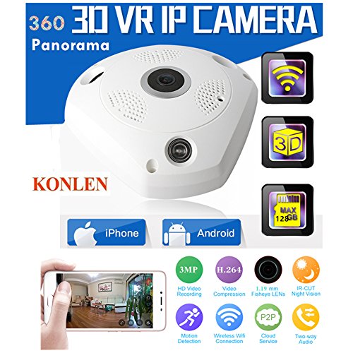 -. Title : KONLEN 360 Camera IP 3MP Fish Eye Panoramic 1080P WIFI PTZ CCTV 3D VR Video IP Kamera Cam Micro SD Card Audio Remote Home Monitoring
