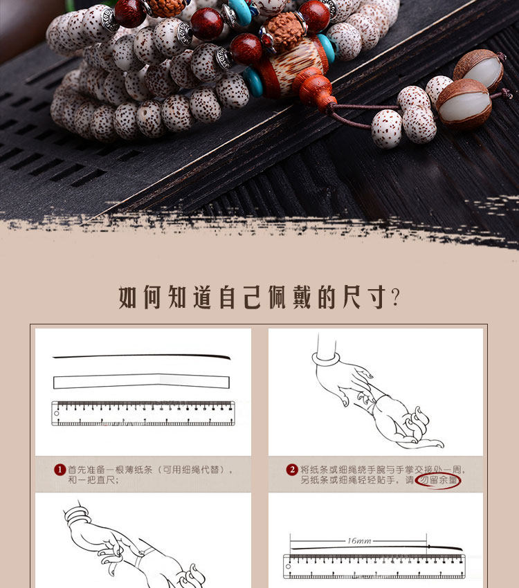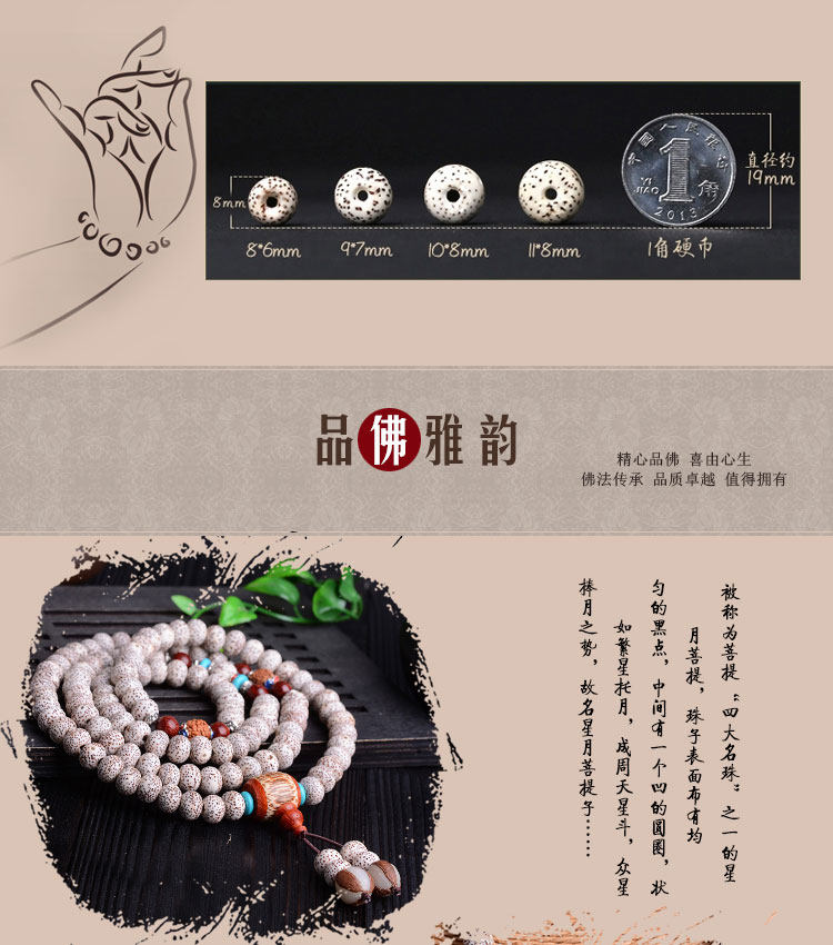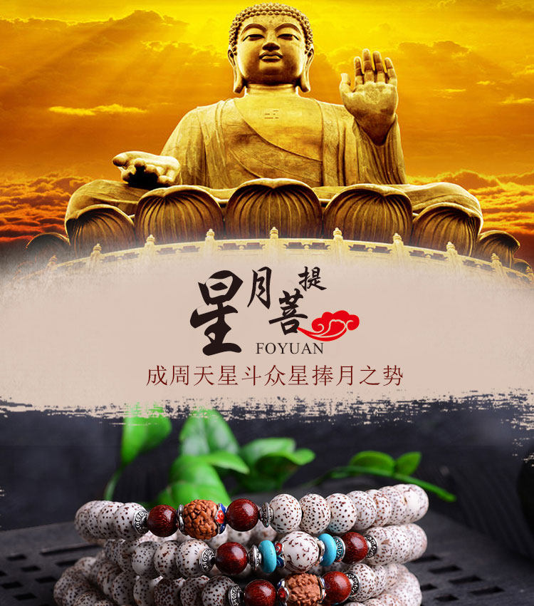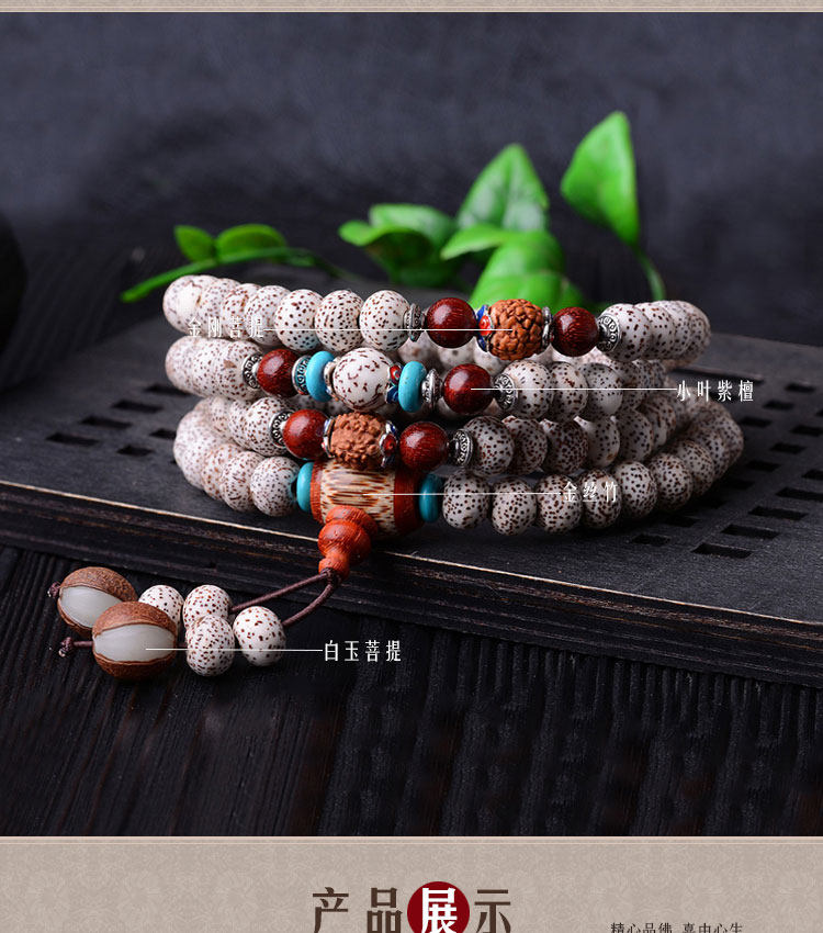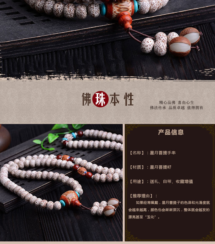 天然藏式项链高密正月干磨108颗佛珠手串星月菩提手链男女