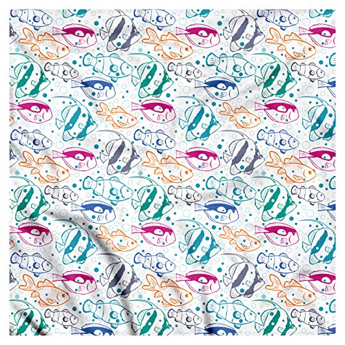 (Ambesonne)/Accessories/Cold Weather Accessories/DIRECT FROM USA/Fish Bandana by Ambesonne, Marine Design Ocean Animals Underwater Hand-Drawn in Lively Colors R...