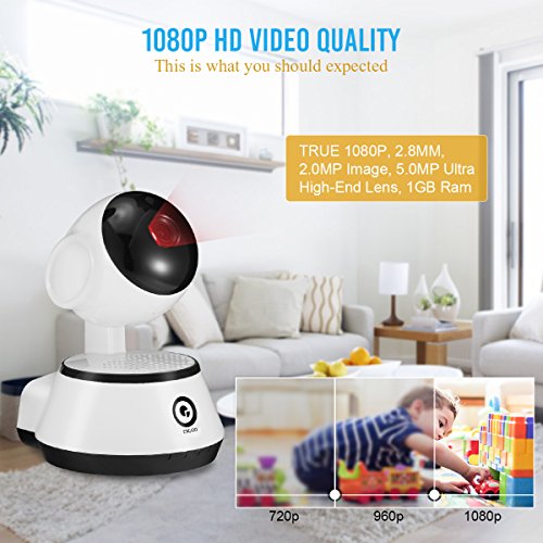 -. Feature : 1080P High Resolution: 1080P HD Video, 2.8mm 130°wide angle lens, H.264 HD Video Quality & Mass Storage, provides you a higher quality images and fluent live video. Our special 2.8mm can imaging the picture in a much larger screen, putting one in your home is enough to view a whole room, plus the PTZ control, all under your DigooEye!! / Perfect Night Vision: With IR-CUT Auto Switch Filter, this security camera will auto switch to night vision when it's dark. Night visibility 10m+, you can see the video as clear as daytime! The second generation IR LED fixed all the bugs such as can't open IR LED at night. Provide the camera a longer using life, also more lighter and stable. / Motion detection&Two Way Talking: High sensitive alarm function, 24/7 real-time message push and E-mail alert ensure the safety of your home. The Surveillance security camera built-in two-way talking with 3D Digital Noise Reduction, providing high quality auditory sense and talking effect. Never let go off any thief, never miss any important moment with you family. / Video Recording&Multi-account Support: Support Micro TF Card Slot (Max to 64GB, not include). Video automatically save in the SD card, You can playback the stored video at anytime. Multi accounts and mufti-platforms support ensure that you and your families enjoy video sharing on IOS, Android, Windows PC, Tablet at the same time. Tips: it will automatically cover the original video if the TF card is full. But you can download the video on your own cell phone to save video forever. / 1 YEAR Warranty : 1 YEAR Warranty Replacement Guarantee and Customer Satisfaction Service by OVOHome. Ask for more professional tech support : support@mydigoo.com About APP: Support both Wireless and Wired network configuration (need 2.4g). The app will recognize the cam once you plug the network cable to the Ethernet port. Search "Digoo Eye" on googly play or apple store, free for use. With reliable Wi-Fi connectivity, to view your home anytime anywhere on digooeye.