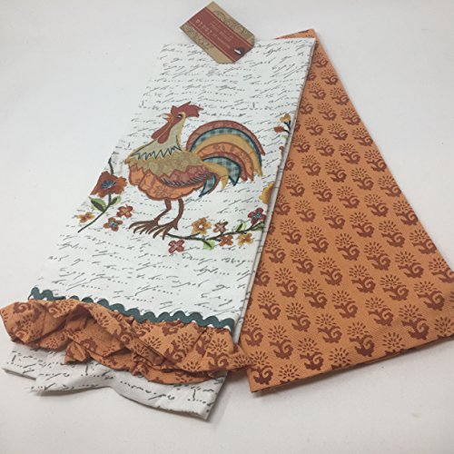 Embroidered Rooster with Ruffled Trim Dish Towel with Coordinating Towel Set