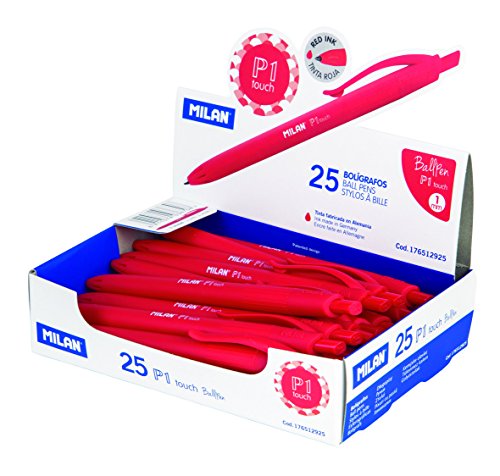 -. Binding : Misc. -. Brand : Milan USA a division of Blumberg Company -. Feature : Ergonomically angled clicker, color coded to match the ink color / Large ink reservoir allows this series to write for almost 4000 feet / Rubber touch item / Pleasant to the touch -. Label : Milan USA a division of Blumberg Company -. Manufacturer : Milan USA a division of Blumberg Company -. Model : 176511925-PARENT -. ProductGroup : Art and Craft Supply -. ProductTypeName : HOME -. Publisher : Milan USA a division of Blumberg Company -. Studio : Milan USA a division of Blumberg Company -. Title : Milan P1 Touch Ball Point Pen, Box of 16