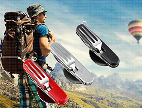 Cocobuy Pack of 3 Stainless Steel Utensil Travel Camping Kit Folding Fork, Knife, Spoon, Bottle Opener Set for Picnics, Hikes and Camping 3 Colors