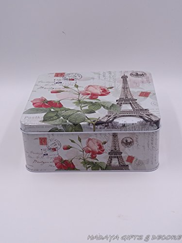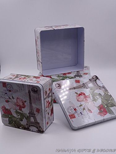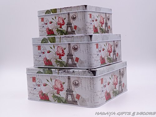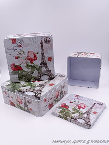 Beautiful Paris themed French Style Eiffel tower themed multipurpose storage tins, shabby chic, Set Of 3 with beautiful floral design