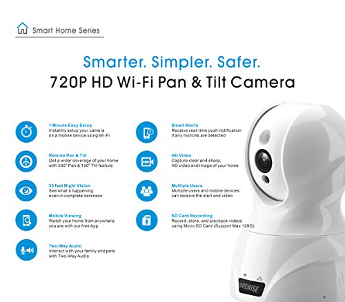 -. Title : VIEWISE Wireless WiFi IP Security Camera Pet Baby Monitoring Two-Way Audio Built-In Microphone Speaker Night Vision Remote Pan/Tilt Motion Detection 720P HD