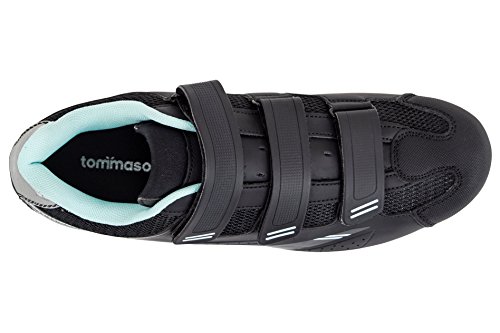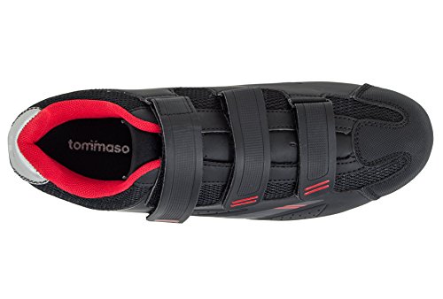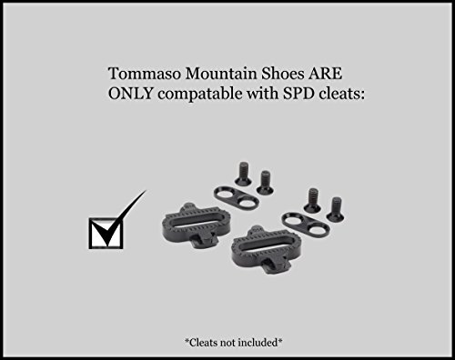 Binding : Apparel Product Description Whether you are looking to conquer the hardest roads, trails, mountains, or your local spin class, Tommaso shoes give riders what they need to reach that next level of training and performance. For most cycling enthusiasts your first pair of clipless shoes and pedals makes cycling a completely new beast. For the employees of Tommaso bikes a clipless set-up is always the first recommendation for cyclists looking to making the next step. The Terra 100 shoe is perfect for touring, spin class, commuting, and mountain bike riding. They are specifically designed to offer riders maximum comfort and power transfer, assuring more riding efficiency. The Terra 100 is our entry level two-hole pattern shoe, designed to be the perfect Segway to clipless riding. It offers 3-strap comfort and adjustability, with a stiff fiberglass reinforced polyamide sole for incredible power transfer. 0