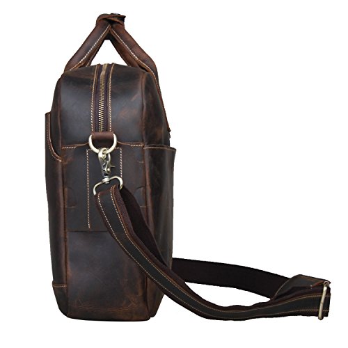 -. Feature : Material: High quality Crazy Horse leather, Retro and Trendy appearance / Dimension:11.8*16.9*4.3inch (L*H*W), Handle approx. 3 inches. / Easy to carry a 15.6 inch laptop in the LAPTOP SLEEVE, the main pocket can accommondate MOST 17 inch / Versatile and Durable for business, Soft Shoulder Strap and Handle for easy, comfortable transport.Pockets of various sizes for accessories / The distinguishing feature of crazy-horse leather is that leather may have wrinkles, scratches that are inherent characteristics . When you scrape it widely, the trace will be appeared .If the trace is not obvious, you can wipe it gently and then the trace will be less