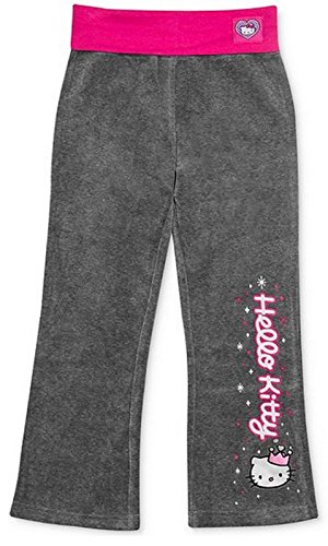 Cotton/polyester Machine washable Imported Hello Kitty little girls fleece pants Contrast, fold-over waistband with patch Embroidered Hello Kitty applique at leg Item includes digital app experience via the KuKee