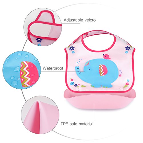 -. Title : Waterproof Baby Bib Detachable with Food Pocket, Easy Wipe Clean, Flexible Adjustable Comfort-fit Fabric Neck for Baby Boys and Girls Toddlers Feeding & Mother Choice