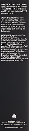 Revive Hydration Mist is specially formulated to instantly hydrate and soothe the skin. Mist skin before and after makeup application and to refresh skin throughout the day. Peppermint, lavender and rosemary essential oils instantly stimulate the senses. An exclusive blend of antioxidants provides nutrients that are vital to maintaining skin's healthy radiance. Use when skin feels dry, when exposed to dry climate conditions or when skin needs an instant burst of hydration.Feature