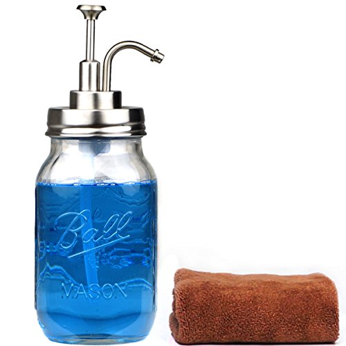 Rust Proof Mason Jar Lotion Soap Dispenser Lids 18/8 Stanless Steel Lotion Dispenser Pump for Regular Canning Jars Bonus a Hand Towel( Jar not Include ).